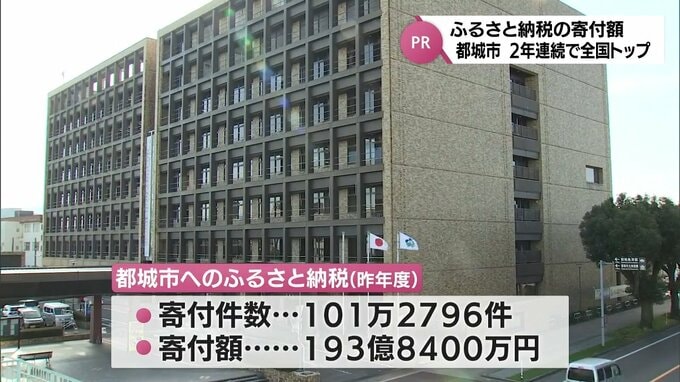 ふるさと納税寄付額 都城市が2年連続全国1位 2024年8月2日(金) 19:00 国内 昨年度のふるさと納税の寄付額が発表されました。自治体別の寄付額では、都城市が2年連続で全国1位となりました。総務省によりますと昨年度の都城市へのふるさと納税の寄付件数は101万件余り、寄付額は193億8400万…