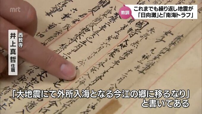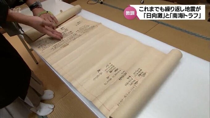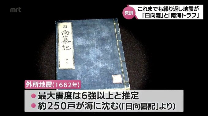 「外所地震」の最大震度は6強以上と推定され、飫肥藩の家老が書いた「日向纂記」には、およそ250戸が海に沈んだと記されています。