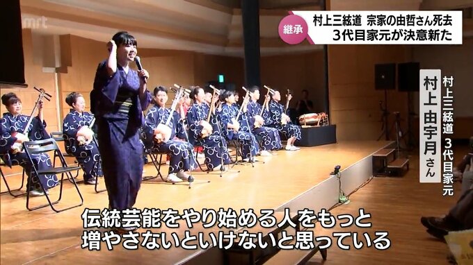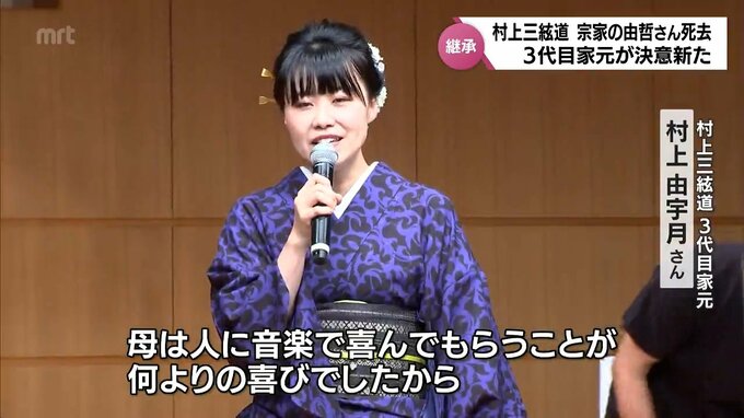 村上さんの娘で3代目家元の由宇月さんが伝統芸能を伝えていく決意を新たにしました。