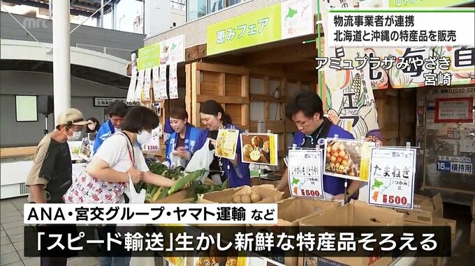 物流事業者が連携 宮崎市で北海道と沖縄の特産品の販売イベント 2024年8月31日(土) 19:00 国内 宮崎市のアミュプラザみやざきではANAや宮交グループ、それにヤマト運輸などが連携して北海道と沖縄の名物を販売するイベントが開かれました。今回のイベントでは、それぞれの「スピード輸送」を生かして、新鮮な…