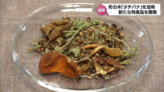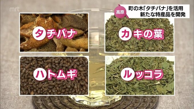 さらに、町内で生産可能な「柿の葉」、「ハトムギ」、「ルッコラ」も使い、それぞれの頭文字をつなげると「た・か・は・る」になる原料をブレンドしました。