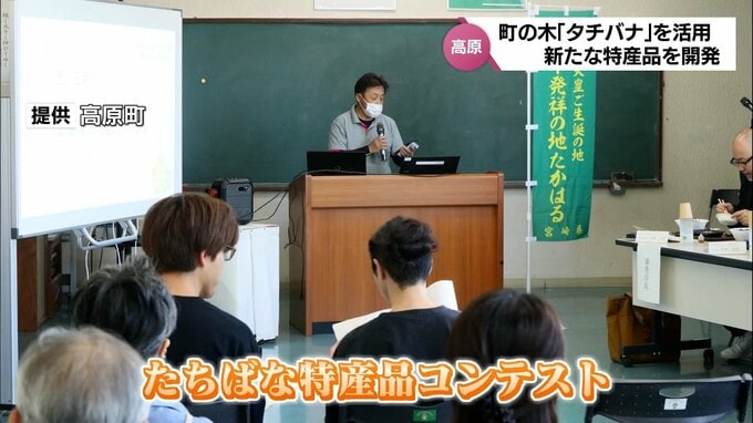 町内産の「タチバナ」を使った商品を募集するもので、町内外の13人が開発した食品やアロマ、それに香水などさまざまな品が審査されました。