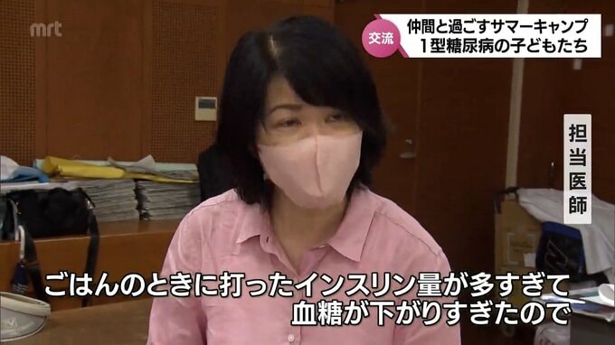 「ご飯の時に打ったインスリン量が多すぎるというところで、血糖が下がったので、血糖を上げるためにブドウ糖が入ったジュースと炭水化物が入っているビスケットをとってもらっているというところ」