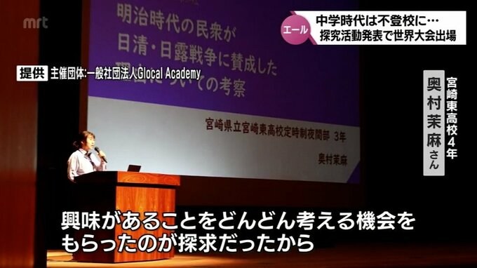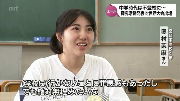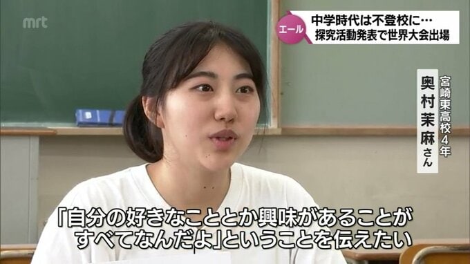 高校生活で探究活動に熱中している奥村さんですが、実は、中学時代、人との関わり方に悩み、不登校を経験しました。