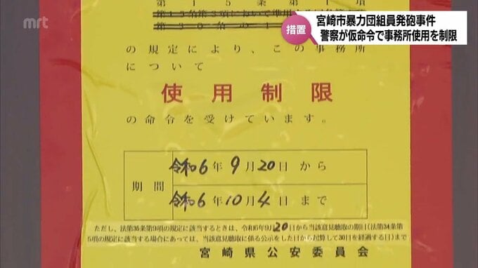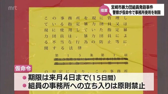 仮命令が出されたのは、宮崎市田代町にある指定暴力団池田組系の事務所2か所です。