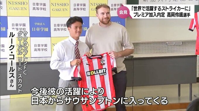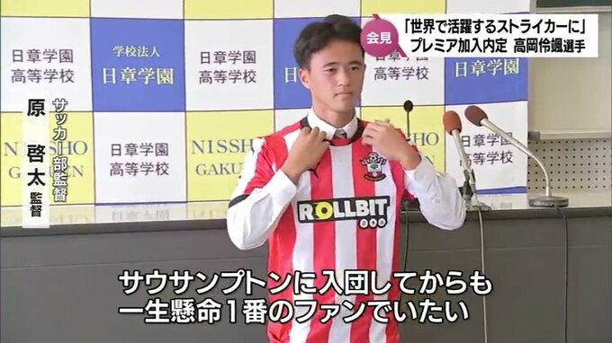 高岡選手は、3日、サウサンプトンFCの加入内定をうけて、高校で記者会見を行いました。