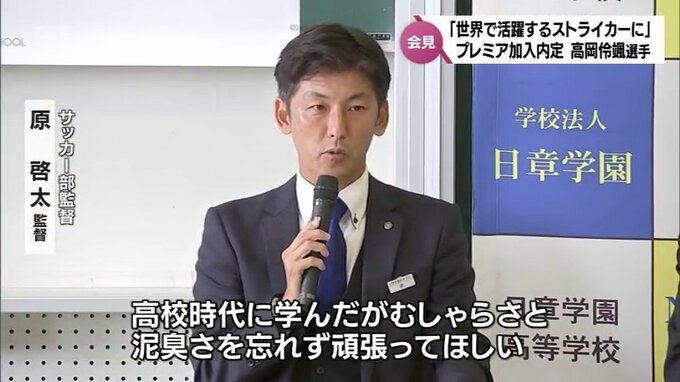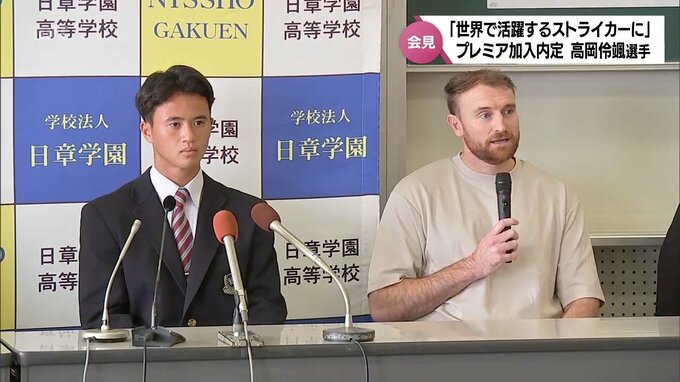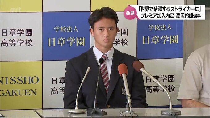 U-17ワールドカップなどで活躍を見せた日章学園高校サッカー部の高岡伶颯選手がイングランド・プレミアリーグ、サウサンプトンFC加入内定を受けて記者会見を行いました。