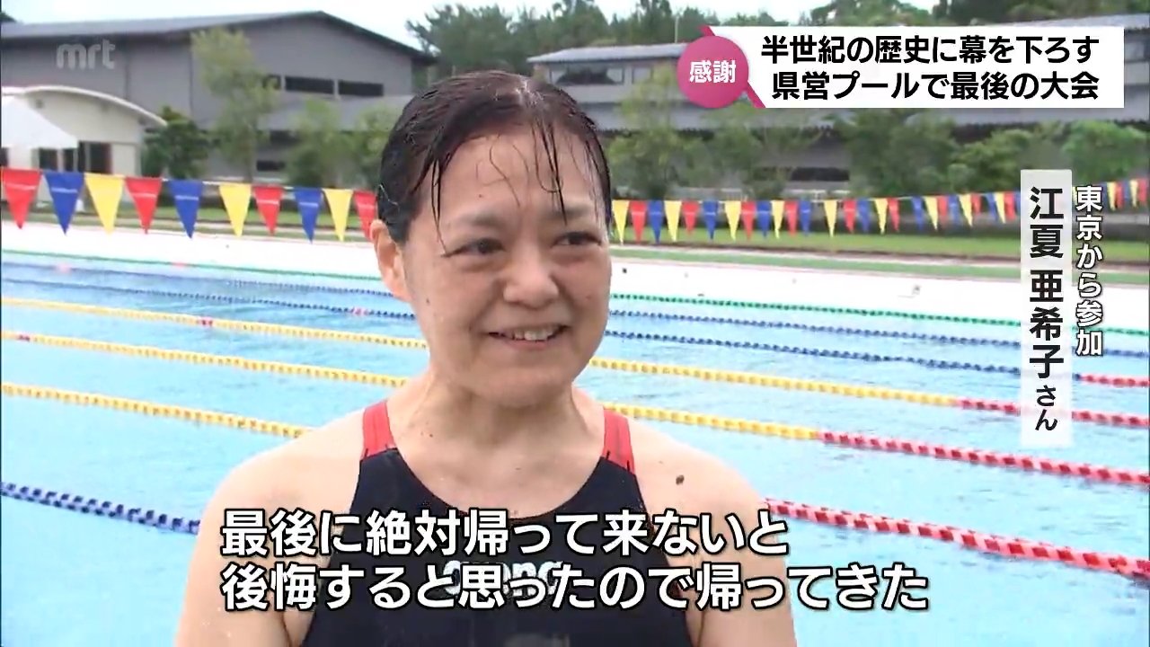 「高校までこのプールで泳いでたのが、今日で最後だと聞いて参加したいと思った。最後、絶対帰って来ないと後悔すると思ったので帰ってきた」