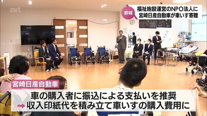 振込支払い推奨で不要となった収入印紙代を積み立てて 自動車販売会社が車いすを福祉施設運営のNPO法人に寄贈 2024年10月17日(木) 17:10 国内 社会福祉に役立ててもらおうと、宮崎県都城市で福祉施設などを運営するNPO法人に県内の自動車ディーラーから車いすが贈られました。都城市のNPO法人「リノラ未来」に車いすを贈ったのは、自動車ディーラーの宮崎日…