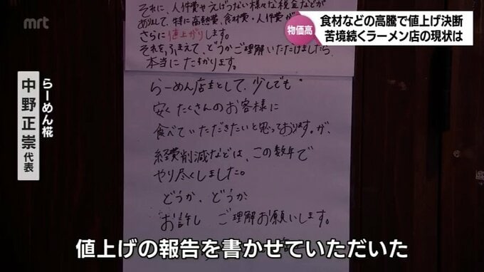 また、麺も仕入れ価格が1玉あたり5円ほど高くなったということです。
