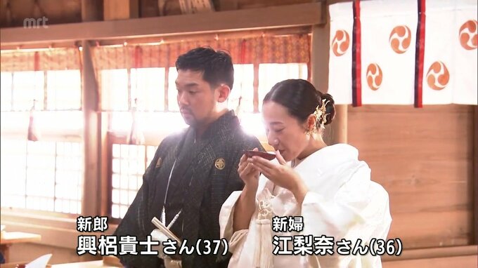 新郎、興梠貴士さんと新婦、江梨奈さんが家族や親戚に見守られながら、ハレの日を迎えました。