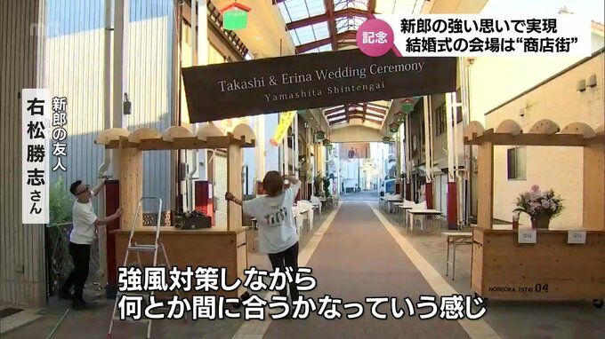 「いやあ、びっくりしました。最初はこんなところで結婚式ができるのかと思っていたが、一晩経ったら立派な会場ができて、びっくりしました」
