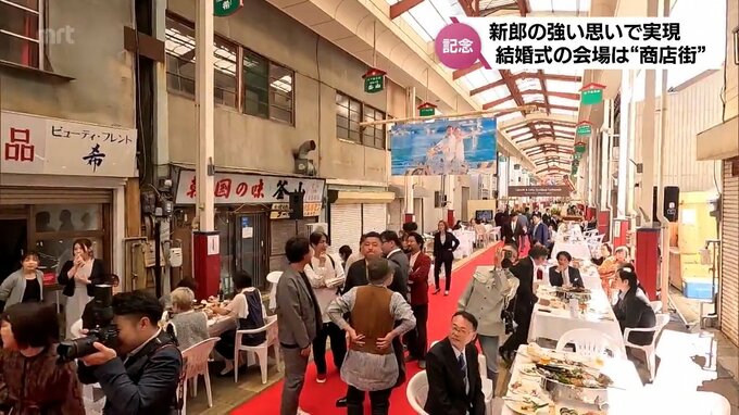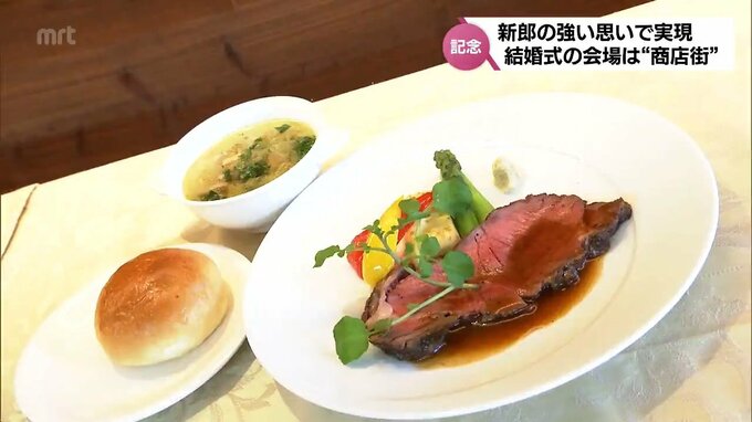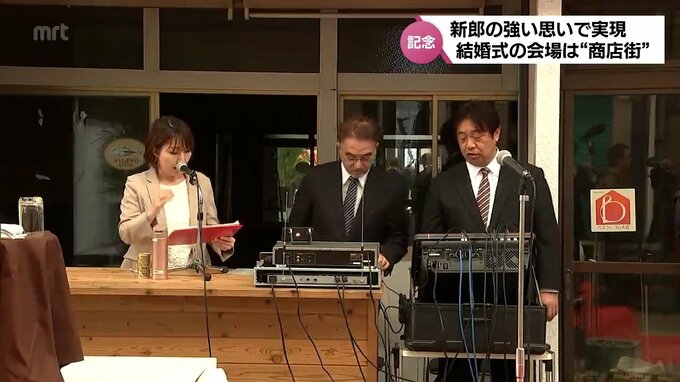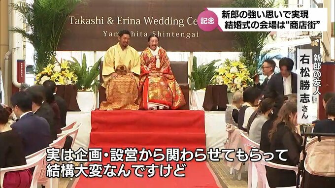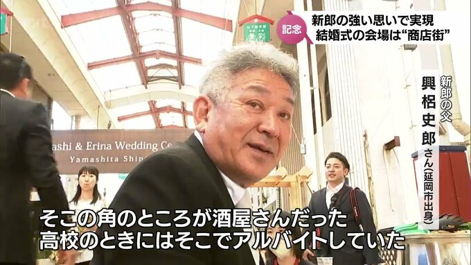 音響設備や料理の一部は商店街に入る店が担当。貴士さんの父も感慨深そうに式を見守りました。
