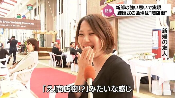「え、商店街?みたいな感じ。素敵に飾られてすごいなと思いました。素敵な結婚式です」