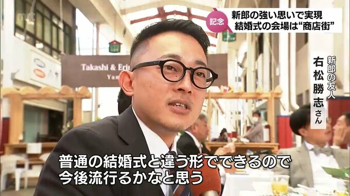 「最初、嘘かと思っていたが、本当にやるということで、実は企画・設営から関わらせていただいて、結構大変なんですけど、でも、普通の結婚式と違う形でできるので、今後、流行るかなと思います」
