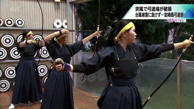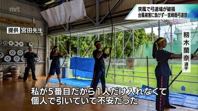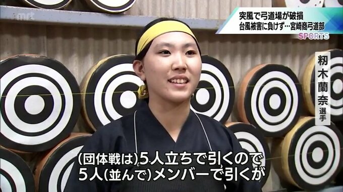 「団体戦は5人立ちで引くので、5人(並んで)メンバーで引くが、(弓道場に)工事の時に足場が立っていて4人でしか引けなくて、私が5番目だから、1人だけ入れなくて、個人で引いていて不安だった」