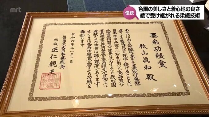 工房は全国で唯一、養蚕から製織までを一貫して手作業で行い、今月1日には、蚕糸絹業の振興・発展に貢献したとして、大日本蚕糸会から秋山さんに「蚕糸功績賞」が贈られました。