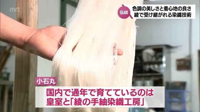 小石丸の繭は、一般的なものと比べて糸は細いものの、つやがあって丈夫という特徴があり、現在、日本国内で通年で育てているのは、皇室とこの工房だけだということです。