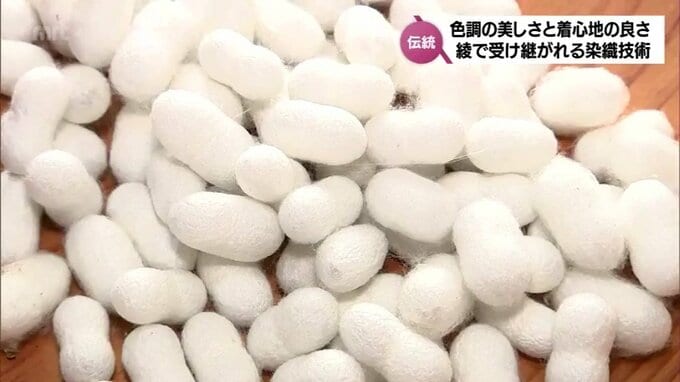 業界では、現在、交雑種の蚕が主流となっていますが、こちらの工房では、日本在来品種である「小石丸」の繭を使い続けています。