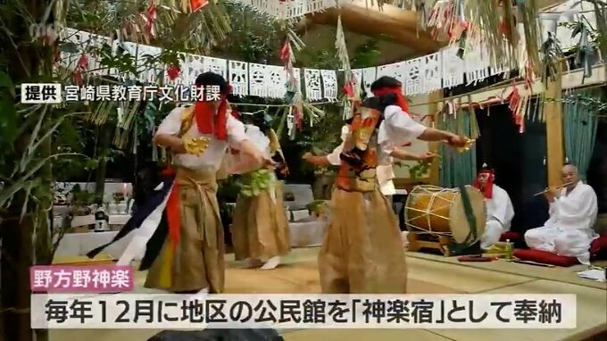 高千穂町岩戸の野方野地区に伝わる野方野神楽。