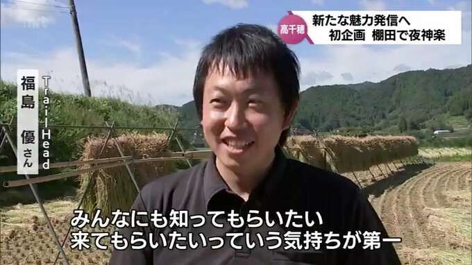 「昨年度の夜神楽の飲み会してて、その時に話してて『あそこで夜神楽できたら面白いよね。松明焚いてその風景の中やったらいいよねって』言ってて」