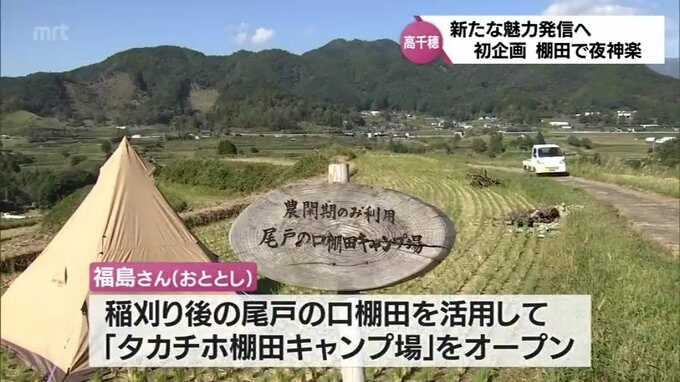 高千穂の景色に魅せられ、地域おこし協力隊としての活動経験もある福島さんは、稲刈りが終わったあとの尾戸の口棚田を活用して、おととしから「タカチホ棚田キャンプ場」をオープン。