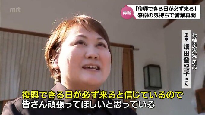 「皆さんに支えていただいて今があるので、その支えですとか、皆さんにしていただいたことを大切に、今度は感謝の気持ちで皆さんにそれを頑張ってる姿を見せて、やり続けていければなって思っています。復興できる日が必ずくると信じてますので、皆さん頑張ってほしいなと思っています」