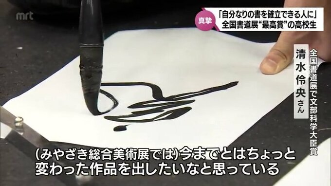 「(みやざき総合美術展では)今までとはちょっと変わった作品を出したいなと思っています。自分なりの書を確立できるような人でありたいですね」