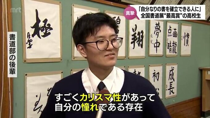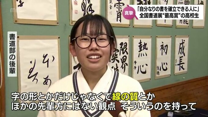 「字の形とかだけじゃなくて、線の質とか他の先輩方にはない観点を持って、そういうところをすごく教えてくれて、書くとこだけじゃなくて姿勢としていろいろ勉強になります」