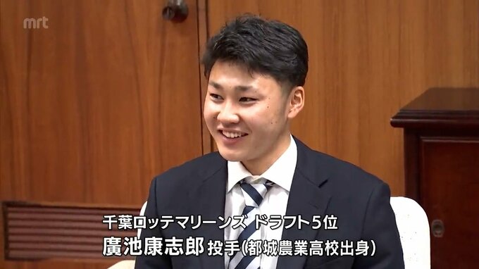 MRT SPORTS UP! 千葉ロッテマリーンズにドラフト5位入団 廣池康志郎投手 地元・都城市で意気込みを語る 2024年12月27日(金) 12:05 国内 千葉ロッテマリーンズにドラフト5位で入団した都城農業高校出身の廣池康志郎投手が都城市の池田市長を表敬訪問し、意気込みを語りました。都城市役所を訪れたのは、都城農業高校出身で千葉ロッテマリーンズにドラ…