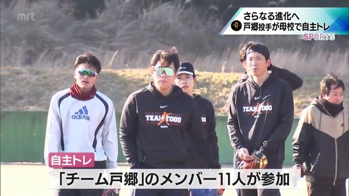 自主トレには、「チーム戸郷」のメンバー11人が参加していて、キャッチボールやノックなどで調整。戸郷投手はおよそ70メートルの遠投も見せました。