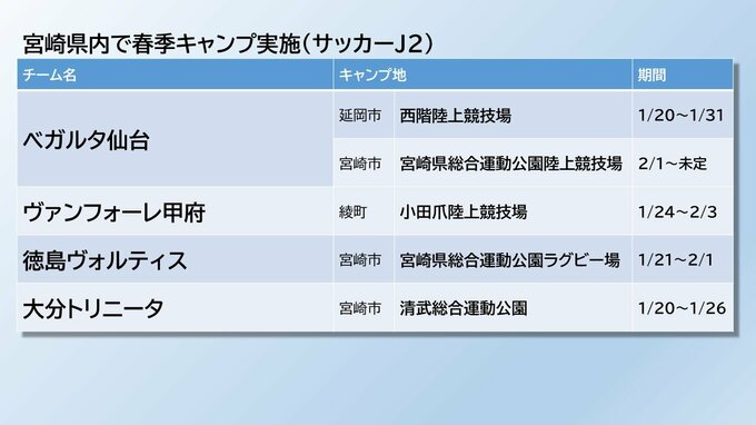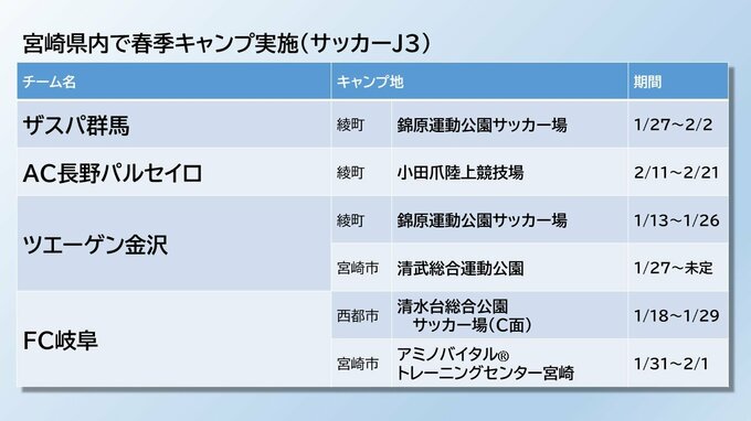 また、J2の4チームとJ3の4チームも県内でキャンプを行います。