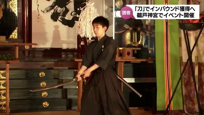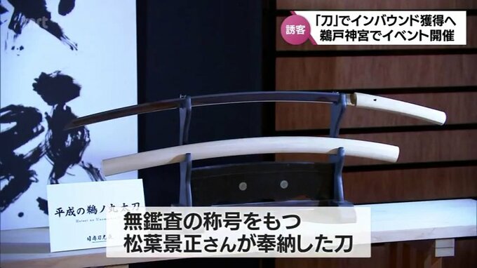会場には、刀匠として最高位の無鑑査の称号をもつ松葉景正さんが奉納した刀が特別に展示されました。
