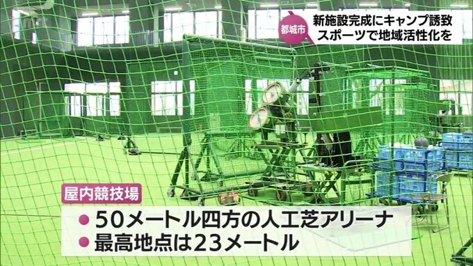 50メートル四方の人工芝アリーナで、最高地点は23メートル。