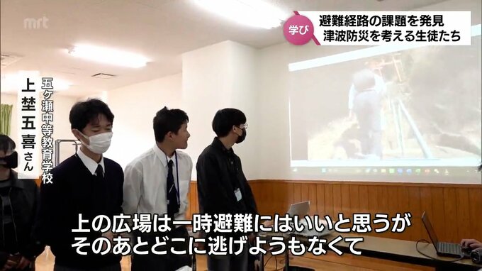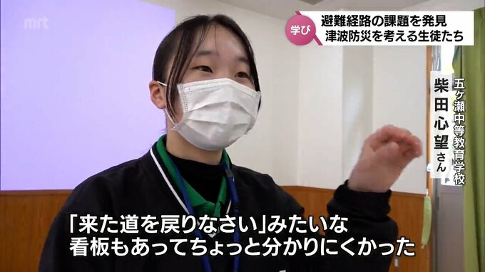 生徒たちは、避難できる場所が少ないことや道路の混雑が予想されるなど、地域の現状を自分たちの目で確認しました。