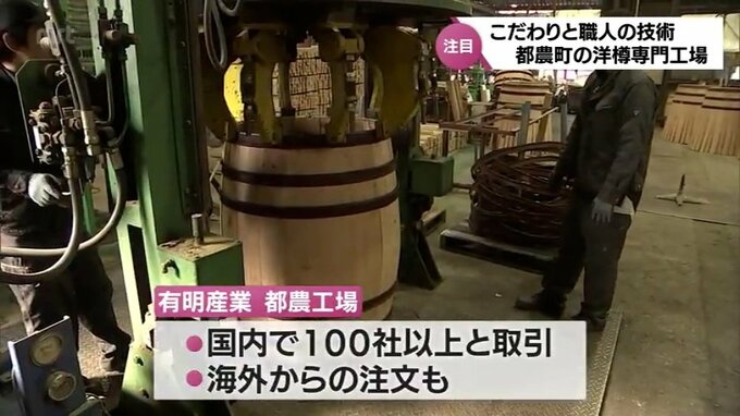 現在、国内で100社以上取引があるほか、海外からの注文もあり、工場では1か月でおよそ330個の樽を製造しています。