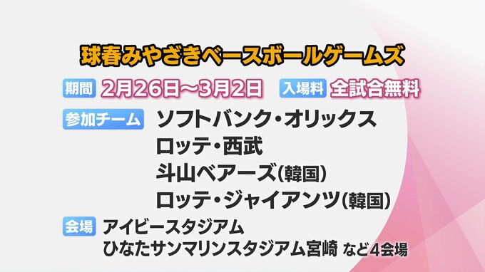 球春みやざきベースボールゲームズは3月2日まで行われ、試合観戦は無料となっています。