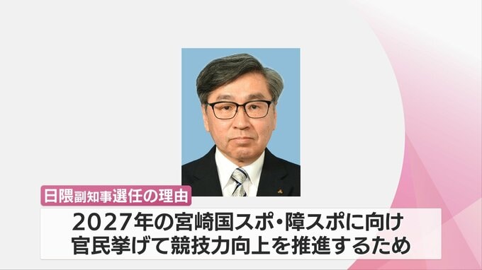 県スポーツ協会によりますと、2027年の宮崎国スポ障スポに向け、官民挙げて競技力向上を推進するため、日隈副知事が選ばれたということです。