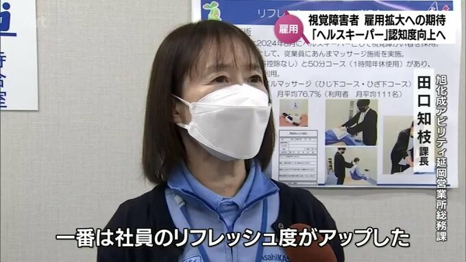 「(明星)視覚支援学校の先生から『国家資格を取る学生がいるので、実習どうですか』という話があった。ヘルスキーパーを雇用することで仕事の広がりがあることと、一番は社員のリフレッシュ度がアップした」