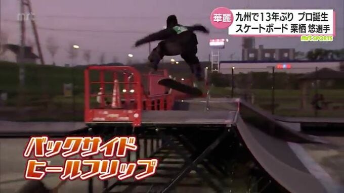オリンピック種目になったもののまだまだスケートボードの練習場は少なく、栗栖選手は県外のレールが高い練習場に行って技の精度に磨きをかけています。