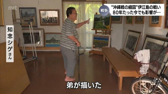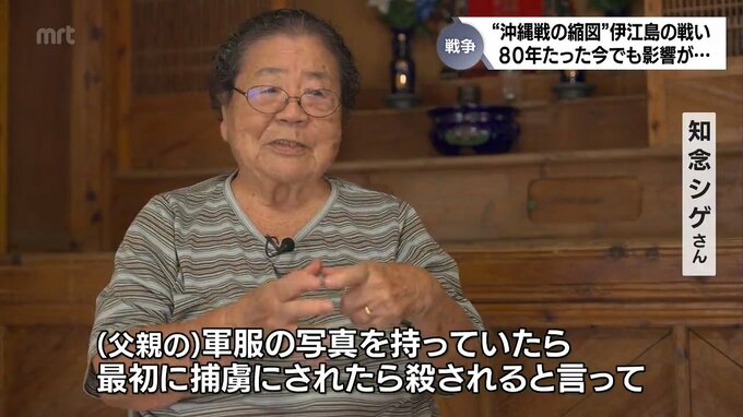 疎開先から伊江島が遠くに見えていたという知念さん。そのときに見た光景は今も頭から離れません。