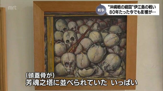 (知念シゲさん)※頭蓋骨が並ぶ絵を指さして
