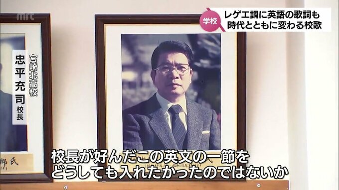 「実は(私も)この学校の1期生で、初代の校長先生(長尾典昭氏)が作詞した。校長が好んだこの英文の一節をどうしても入れたかったのではないか」