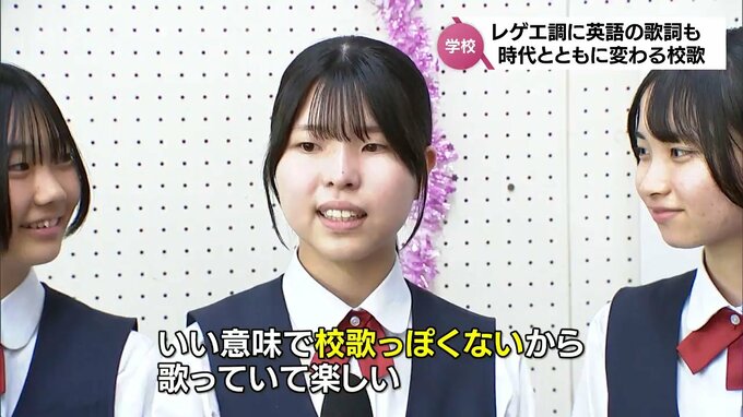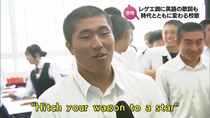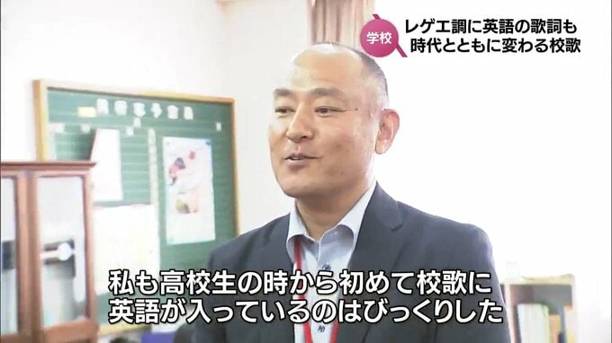 「私も高校生の時から初めて校歌に英語が入っているのはびっくりした。今の生徒も非常に元気に英語の部分は歌う」