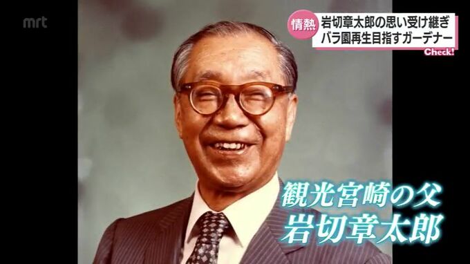 観光宮崎の父、岩切章太郎の言葉、「ゆめとおとぎの花のくに」を目指し、バラ園の再生に情熱を注いでいます。