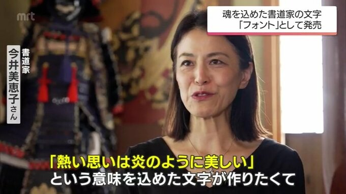 「熱い思いは炎のように美しいという意味を込めた文字が作りたくて、この『炎美文字』にしました。フォントの文字が着地するまでにいくつか(候補を)出しては、ダメ出しがきてという繰り返しがあって、今までにフォントとしてない文字を作り上げるっていうとこに少し苦労しました」