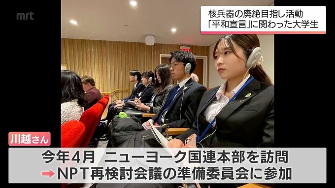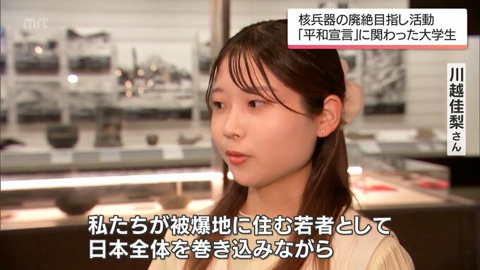 川越さんは、長崎県内の大学生で構成し核兵器の廃絶を目指す「ナガサキ・ユース代表団」のメンバーとして活動。