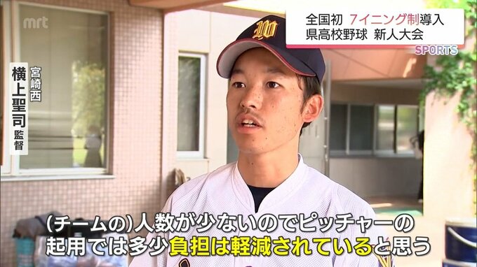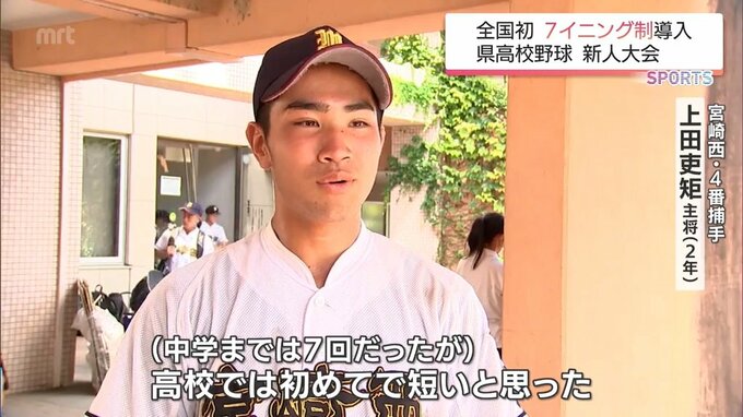 秋の宮崎県大会は従来通りの9イニング制で行う一方、今年の滋賀国スポでは7イニング制が導入され、今後の議論に生かしていくことになっています。