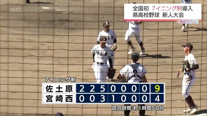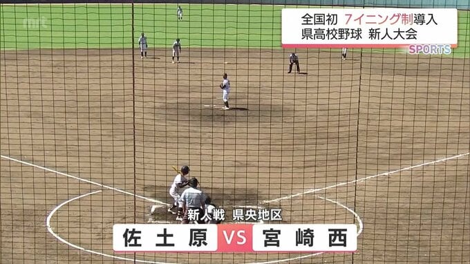 19日、開幕した高校野球の県新人大会。1試合目は佐土原と宮崎西が対戦し、7イニング、およそ1時間50分で試合は終わりました。