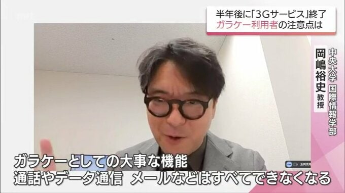 「(ガラケーの利用者が日本に)100万から200万のオーダーでは、まだいらっしゃるかもしれないです。ガラケーとしての大事な機能、通話をするとか、データ通信、メールをやり取りするといったところは、すべてできなくなります。110番通報すらできなくなるので、そこはあらかじめ知っておく必要があります」